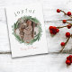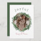 Joyeuse, rustique et élégante carte de Noël photo est la façon parfaite d'envoyer des voeux de vacances à des amis et à la famille. Pour la personne moderne qui veut une carte de Noël haute, chaude et de bon goût, ce modèle de carte de Noël personnalisable est parfait pour vous. Moderne simple et écriture à la main avec le mot "joyful" a l'esthétique de vacances pleine d'espoir que tout le monde aime. Utilisez l'outil de personnalisation pour placer votre image dans la couronne et la personnaliser avec votre nom. La couleur verte profonde au verso et l'accueil de Noël agréable donnent à la carte de Noël un look sophistiqué. L'accueil peut être utilisé tel quel ou customisé pour en faire votre message personnel.