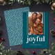 Faites preuve de simplicité en cette période de vacances avec nos cartes de Noël minimalistes. Avec un arrière - plan turquoise profond, personnalisable à n'importe quelle couleur de votre choix, nos cartes feront de votre photo de famille la star du spectacle. Avec des lignes modernes et un titre "joyeux", c'est une façon de partager avec goût les souvenirs et la joie de votre famille pour l'année.
