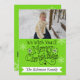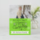Texte noir qui dit "We Wish You A Joyeux Noël" sur le devant et "and a Happy New Year!" sur le dos avec un arrière - plan vert vif, des flocons de neige blancs et un cerf en silhouette, et des zones où vous pouvez ajouter votre nom de famille et votre photo sur une carte de voeux de Noël, vous êtes sûr de vouloir envoyer famille et amis!