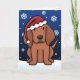Envoyez les cartes de Noël Redbone Coonhound à tous vos amis amoureux des animaux cette année! Un mignon dessin animé kawaii se trouve sur la neige fraîchement tombée, portant un casquette Père Noël, tandis que des flocons de neige dérivent doucement tout autour de lui. A l'intérieur, il y a aussi des flocons de neige et on peut lire : "Joyeuses fêtes !" Vous pouvez personnaliser le texte à n'importe quel message.