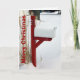 Photo chargée de neige d'une boîte aux lettres, avec un billet rouge. Texte : Joyeux Noël, avec un salut à l'intérieur. Modifiez le texte à votre convenance, ainsi que la couleur, la taille et le style de police. Fait une grande carte de voeux de Noël d'un transporteur de courrier à leurs clients.