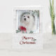 Cette jolie carte de Noël présente Snowdrop, un doux petit chien maltais. Elle est assise à l'intérieur d'une fenêtre qui regarde le gel et la neige.