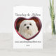 Cette carte de Noël présente une chute de neige, un petit maltais sucré qui sort de l'arrière de quelques boules de Noël et un sapin de Noël.