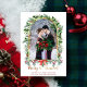 Souhaitez à vos amis et à votre famille un joyeux Noël avec cet élégant carte photo avec cadre en arc d'or entouré de bouquet botanique d'hiver, votre photo préférée, et texte du script "Merry & Married" en or et rouge. Ajoutez votre texte personnalisé ci-dessous pour une touche personnelle.