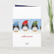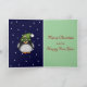 Tout autour de la carte de Noël / Nouvel An design montre sur le devant deux pingouins avec un casquette festif, décoré de flocons de neige. Ils sont devant un immense arbre de noël aux billes argentées et aux petites étoiles brillantes. Cette carte peut être customisée en changeant les couleurs de l'arrière - plan intérieur de la carte et / ou le texte en celui(s) désiré(s).