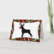 La carte de Noël de Pinscher miniature d'amusement a la silhouette de race de chien, avec des andouillers de renne et un nez rougeoyant rouge lumineux. L'arrière - plan est un plaid gai de vacances avec des rouges et des verts. L'intérieur lit, "souhaitant vous et votre famille par saison des vacances merveilleuse !" Personnalisez le message à vos propres facilement. Cartes de Noël mignonnes d'amoureux des chiens.