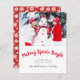 Votre photo de famille préférée prend le devant de la scène au sommet de cette carte photo festive de Noël. Making Spirits Bright est écrit dans un script de Noël rouge ludique. Vous pouvez utiliser le souhait de vacances que j'ai inclus ou facilement changer le texte modèle à votre propre. Votre nom suit dans un script décoratif. Le dos de la carte est recouvert d'un motif de flocon rouge et blanc.