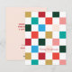 Cette carte de Noël personnalisable et moderne est une célébration de la joie et de la créativité festives! Inspiré par les queues douillettes les soirs d'hiver, notre carte de Noël à damier coloré vous permet d'ajouter votre touche personnelle à la saison des Fêtes. Pleine de couleurs vives et ornée d'un motif de damier captivant, cette carte est un plaisir visuel qui apportera sûrement des sourires aux visages de vos proches.