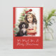 Une petite fille douce tient son chien chiot espagnol à côté du sapin de Noël. Elle est habillée en blanc d'époque avec de beaux arcs et des cendres rouges. Vous n'avez pas besoin d'aimer les chiens pour aimer cette carte, mais vous pouvez ! Il est d'un design vintage et aquarelle. "We Wish You A Joyeux Noël" est le message saisonnier classique. Notez que l'image à l'avant de cette carte plate et celle à l'arrière peuvent être remplacées par votre propre photo, si vous le souhaitez. En outre, tout le texte, qui est dans un joli script, blanc sur le devant et rouge sur le dos, peut être édité avec le libellé de votre propre. Assurez-vous de modifier les noms et la date de l'exemple.