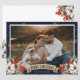 Célébrez les fêtes d'hiver avec cette carte de Noël photo bleue représentant une peinture aquarelle de poinsettia, de houx et de baies rouges. Personnalisez facilement cette carte de vacances avec votre photo et votre texte.