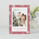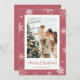 Carte de Noël aux flocons de neige roses avec des flocons de neige sur un arrière - plan rose enneigé. Personnalisez facilement cette carte photo de Noël avec votre photo et votre nom de famille.