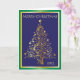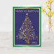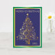 Carte de Noël pliée bleu clair, or et vert