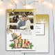 Arrière - plan rustique à l'ombre dorée avec des flocons de neige blancs, bleus et dorés, ses bottes de cowboy et ses bottes avec poinsettias et des baies de pin photo carte de Noël.