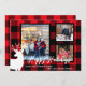 Customisez cette carte de Noël avec 3 de vos propres photos pour envoyer à toute votre famille et vos amis. Cette carte a un look flanelle avec motif plaid rouge et noir comme arrière - plan. Sur le dessus s'assoient les images avec un cadre noir et le cerf/buck blanc ainsi que le texte blanc. Le verso de la carte peut être utilisé pour partager vos nouvelles annuelles si vous choisissez de le faire. De plus, sur le dos, le motif plaid rouge et noir sert de cadre avec un espace noir vide au milieu où le texte blanc peut être utilisé pour écrire votre message.