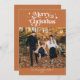 Carte de vacances rétro et minimaliste pour 2023 avec polices rétro avec tourbillons qui dit "Joyeux Noël" au sommet avec étoiles. Vous pouvez ajouter 2 photos à cette carte. L'arrière - plan est marron terre cuite.