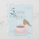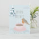 Cette mignonne carte de Noël "voeux chauds" comporte une tasse de café rose remplie de café et un robin sur un arrière - plan bleu clair avec un arbre couvert de neige. L'envers présente un motif floral bleu clair arrière - plan avec des poinsettias saintes et blanches. Personnalisez-le selon vos besoins.