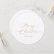 Partagez vos salutations festives avec cette carte ronde de Noël avec un élégant script d'or et une couronne de fêtes classique sur le dos. Sa forme circulaire unique et son design intemporel en font un endroit charmant pour vos amis, votre famille ou vos collègues, ajoutant chaleur et élégance à votre période de vacances.
