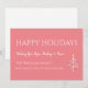 Carte de voeux rétro de Noël Happy Holidays, avec un design à feuillage persistant simple sur un arrière - plan rose doux. Avec le lettrage blanc personnalisable, vous pouvez ajouter votre propre texte. Cette carte moderne du milieu du siècle est idéale pour envoyer l'amour et les voeux heureux cette saison de vacances.