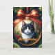 Portrait de chat en tuxedo sur une carte d'ornement de Noël
