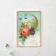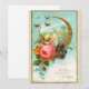 Une belle carte de Noël victorienne avec des roses et une nouvelle lune, réimprimée d'un original du XIXe siècle dans les archives privées de This Victorian Life. <www.ThisVictorianLife.com>