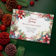 La Carte Vintage de Noël Watercolor est un choix classique et magnifique pour la saison festive, évoquant un sentiment d'élégance intemporelle. Cette carte de vacances possède une esthétique charmante, peinte à la main, qui se sent à la fois personnelle et profondément enracinée dans la tradition des vacances. Le coeur de ce design est l'aquarelle, qui donne à l'image une qualité douce, romantique et un peu nostalgique. Les couleurs sont au coeur de son attrait, avec une utilisation dominante de teintes riches et profondes. La palette classique de Noël rouge et vert est un aliment de base, souvent avec une canneberge profonde ou un bordeaux légèrement muet associé à une forêt ou un vert de pin. Ils sont souvent accentués par des touches d'or, soit comme un shimmer subtil à l'intérieur de l'aquarelle ou comme élégant lettrage métallique. L'imagerie est la clé de l'attrait vintage. Cette carte de Noël aquarelle comporte souvent des éléments botaniques, comme les baies sèches, les branches de pin, le mistletoe ou les fines branches du feuillage hivernal. Elles sont disposées en couronnes gracieuses, en guirlandes ou en bordures qui encadrent le message. D'autres motifs courants incluent des illustrations de scènes de Noël classiques, comme de charmantes maisons enneigées, des lanternes festives ou des rennes fantaisistes. Le style artistique évoque des illustrations de livres classiques pour enfants ou de cartes postales de vacances. Le thème général est chaleureux, accueillant et rappelle les cartes de Noël aquarelles peintes à la main des générations précédentes. Parfait pour les familles ou les individuels qui apprécient le design classique, cette carte botanique de Noël élégante incarne la nostalgie tout en restant raffinée et élégante. C’est le choix idéal pour ceux qui veulent honorer la tradition et envoyer un accueil de vacances qui se sent personnel, significatif et intemporel. L'ensemble de la carte est traditionnel et raffiné. Le texte est généralement un simple et sincère "Joyeux Noël" ou "Joyeux Fêtes", souvent écrit dans une police élégante et cursive qui complète l'art. Cette élégante carte botanique de Noël est parfaite pour ceux qui apprécient la beauté durable d'un design de vacances classique.