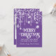 Photo violet et blanc String Lights carte de Noël avec un joli plaisir fantaisiste et un accueil festif.