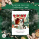 Une jolie carte de Noël pour chien Boston Terrier est dotée de jolis graphismes d'aquarelle d'un Boston Terrier plein d'entrain enveloppé de lumières de Noël près d'une cheminée et d'un sapin de Noël. Personnalisez avec votre famille et le nom de votre chien.