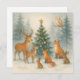 Partagez la magie de la saison avec cette élégante carte de Noël boisée. Un arbre festif orné d'ornements dorés brille dans une forêt enneigée comme des cerfs, des renards, des lapins et une chouette se rassemblent en harmonie.