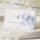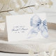Cette carte élégante dispose d'un arc bleu charmant parfait pour une douche nuptiale "quelque chose de bleu". Conçu dans une aquarelle pastel douce, il combine écriture manuscrite romantique avec des éléments fantaisistes tendance. Idéal pour une douche nuptiale bleu poussiéreux.