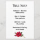 tige de rose rouge, idée de carte de siège de table. Siégez les invités mariages en listant les noms sur une carte de numéro de table unique. Celui-ci a le même texte et la même image de part et d'autre. Cartes blanches avec texte noir et numéro de table écrites en haut. Une seule tige rouge orne le fond de la carte. Le texte pour les noms est une police imprimée et en gras et s'aligne sur le haut. Ajoutez des espaces pour prendre en charge tous les noms. Double-les, comme M. et Mme, ou listez séparément. Cet exemple peut accueillir huit personnes par table.