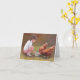 Cette carte de note comporte une reproduction de ma peinture à l'huile originale des poulets de alimentation d'une fille.