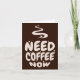 Conception amusante de café avec les mots "besoin de café maintenant" en forme de tasse de café.