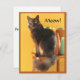 Chat noir aux cheveux longs assis sur la table devant des bobines, et cônes de fils colorés (or, rose, marron, aqua). À l'intérieur, on trouve une collection de boules de fils dans les tons jaune et orange, avec le texte "D'un chat artisanal à un autre — Bonne journée!"