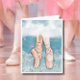 Jolies cartes de notes avec un design unique avec des pantoufles de ballet rose dans le ciel avec des fleurs qui pleuvent. À l'intérieur. Différentes tailles disponibles.