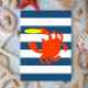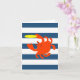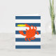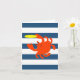 Cette carte à notes vierges montre un peu de fantaisie nautique avec des rayures marines et un crabe faisant un bond pour un frisbee volant.