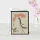 Une grue de huée prolonge son cou vers le haut pour atteindre une orchidée surdimensionnée dans la conception Asiatique-inspirée sur cette carte de note. La grue est identifiée avec le noir sur son cou et ailes et par le rouge sur son visage et tête. L'orchidée de phalaenopsis est orange pâle avec le feuille vert-foncé à la base de sa tige courbante. L'arrière - plan beige profond et l'aspect affligé donnent à l'image le regard d'une peinture antique sur le papier qui s'est fané au cours du temps. De mon image numériquement créée d'original.