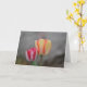 Cette carte de notes présente de belles tulipes à rayures de bonbons avec un arrière - plan doux.