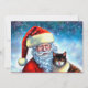 Carte de note de Noël Père Noël et Cat Flat