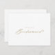 Cette carte de proposition chic or bridesmaid est parfaite pour un mariage rustique. Le design sobre et élégant présente une typographie de script classique et sophistiquée en or. Changez le libellé et utilisez ces cartes pour demander à tous les membres de votre fête de mariage : bonne d'honneur, maîtresse d'honneur, demoiselle d'honneur, demoiselle d'honneur, demoiselle d'honneur junior, fille de fleurs, meilleur homme, groomsmen et plus !
