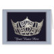 Carte de note de Merci montrée avec une frontière Argent-Bleue sur l'arrière - plan profond de bleu marine avec une couronne de couleur d'argent de lumière de style de Mlle Amérique de reconstitution historique au centre. Masquez à l'intérieur. Customisez au menu de sélection vers la droite.