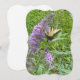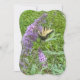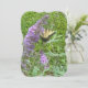 carte de voeux avec beau papillon jaune sur un buisson à fleurs violettes