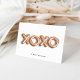 Design moderne fantaisie avec "XOXO" épelé en ballons d'or rose, avec votre nom ou choix de personnalisation sous en lettres noires. Ajoutez un message interne pré-imprimé si vous le souhaitez.