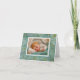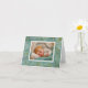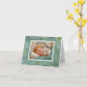 Un bébé doux est enfoui dans un lit doux d'aqua et de crème. Le design chromolithographique antique peut annoncer l'arrivée de votre nouveau membre de famille. Il est prêt pour votre touche personnelle.