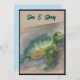 Aquarelle peinte d'une petite tortue nageant le long. De beaux lacons, bleus et verts créent une douce interprétation apaisante d'une petite tortue qui se déplace à travers les eaux. Un design mignon adapté aux cadeaux pour bébé ou pour la décoration maison, cartes pour notes et sacs fourre-tout.