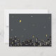 Carte de note super-héros personnalisée avec une vue panoramique de la ville, des éclairs et des étoiles avec une atmosphère de bande dessinée.