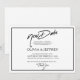 Replanifiez votre jour de mariage avec cette annonce de nouvelle date moderne et chic en calligraphie brossée. Une carte de sauvegarde de la NOUVELLE date de mariage avec un cœur au verso. Personnalisez facilement avec les noms, la date de l'événement et les détails importants.