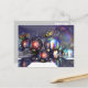 Une carte de Noël unique et différente avec des boules brillantes sous un ciel étoilé et enneigé. Le texte "Joyeux Noël" est créé dans une des balles. Ce produit peut être customisé en changeant la couleur arrière
