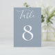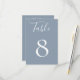 Couleur bleu foncé, carte de numéro de table. Dispose d'un design assorti à l'avant et au dos. Veuillez noter : lors de la commande de cartes de numéro de table, chaque numéro de table doit être commandé individuellement.