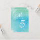 Carte de numéro de table de mariage à l'aquarelle plage océan.