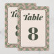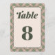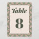Guidez vos invités à leurs places avec ces numéros de table élégants inspirés de l'Art Déco. Avec une bordure géométrique sophistiquée en vert sauge et rose poussiéreux, chaque carte affiche un numéro gras et facile à lire dans une typographie classique. La conception recto-verso assure une visibilité sous tous les angles, avec le motif de signature au dos. Un ajout élégant et fonctionnel à la décoration de votre table de réception.